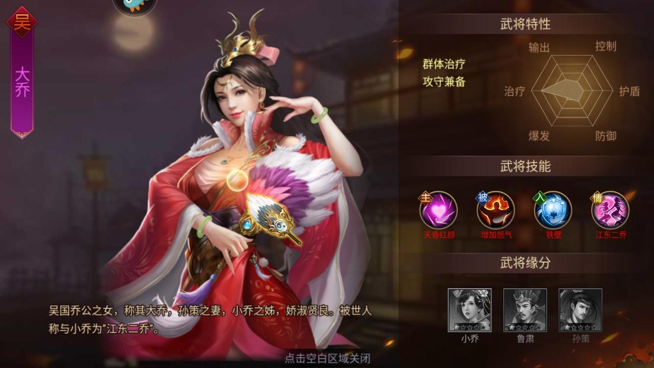 2.姜维.诸葛亮和小乔可以为另外两位输出角色提供攻击力加成和生命值,提升队伍的输出上限。