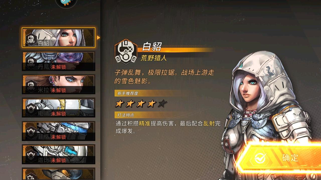 然后荒野猎人的话,应该是白貂,丹尼尔(玩精准),米拉(麦斯和法菈归为觉醒者),