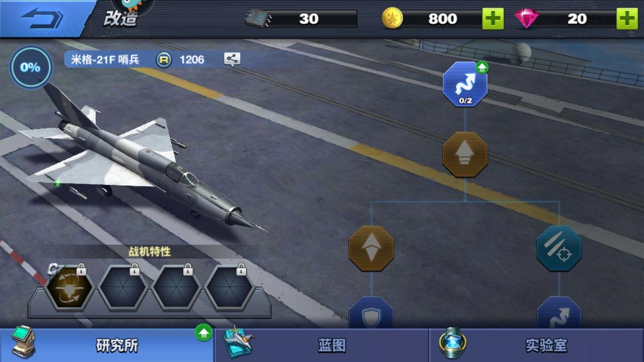1.新手想要在游戏当中快人一步,空战争锋攻略是一定要知道的。事实上,在游戏当中,F-22C竞天择是当今世界上先进的战斗机,在游戏里面,玩家的勋章在达到了2000的时候,就可以对该飞机进行解锁了,当然了,玩家也是需要花费掉4800钻石才能够获得它的。F-22C竞天择属于敏捷型飞机,其锁定速度也是很快的,闪避能力很强,敏捷性也很高,它将会是一款未来的1V1神器。