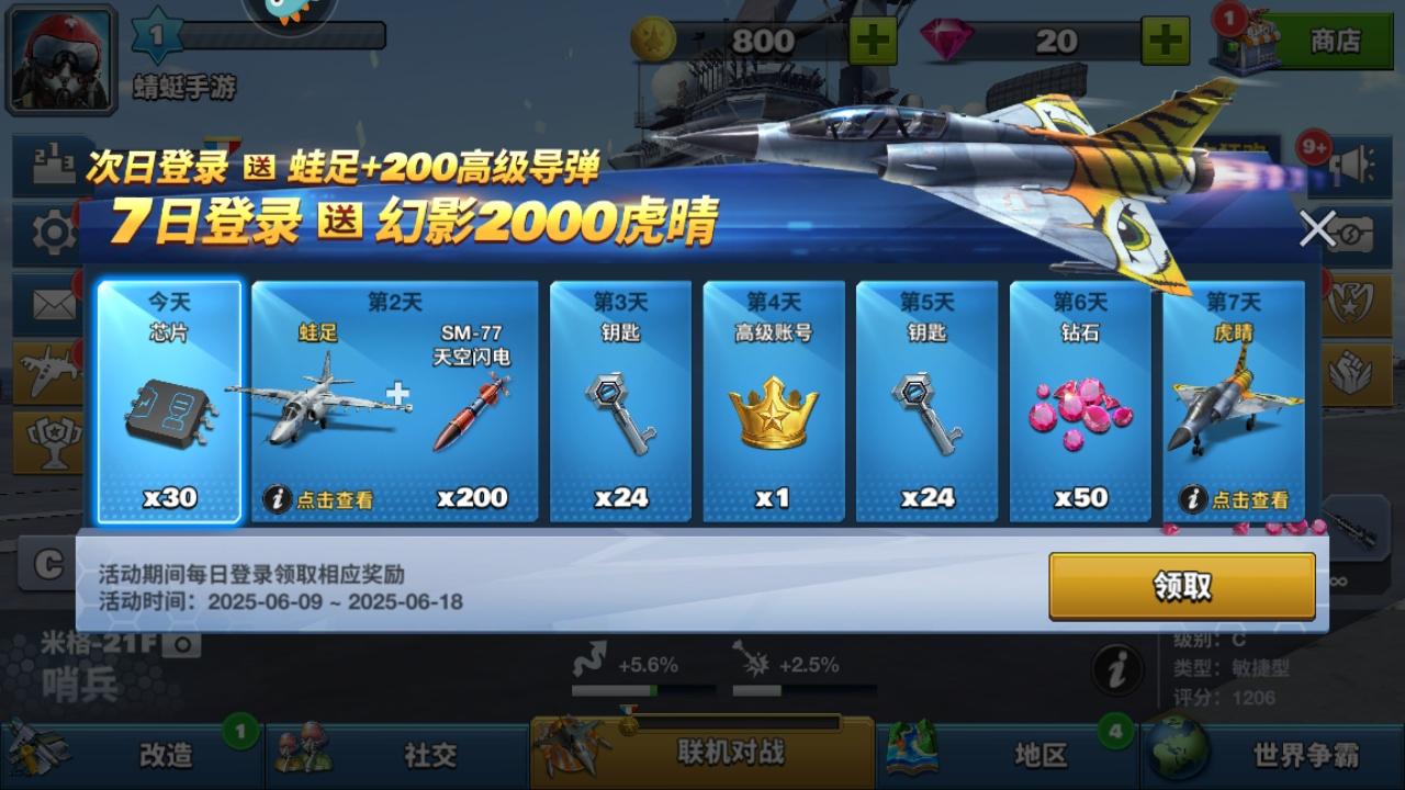 1.新手想要在游戏当中快人一步,空战争锋攻略是一定要知道的。事实上,在游戏当中,F-22C竞天择是当今世界上先进的战斗机,在游戏里面,玩家的勋章在达到了2000的时候,就可以对该飞机进行解锁了,当然了,玩家也是需要花费掉4800钻石才能够获得它的。F-22C竞天择属于敏捷型飞机,其锁定速度也是很快的,闪避能力很强,敏捷性也很高,它将会是一款未来的1V1神器。