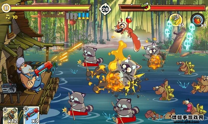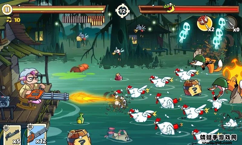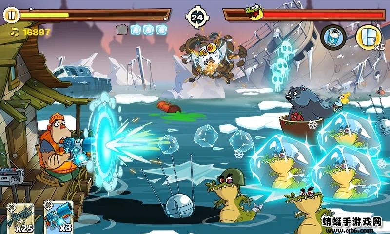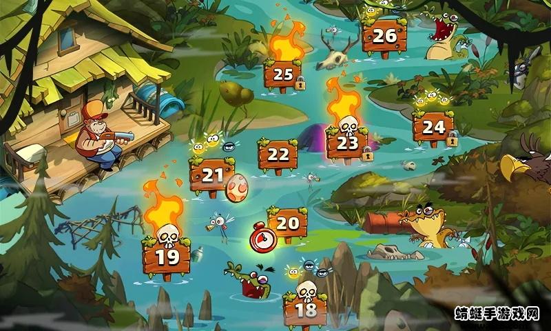 4、使用武器来攻击迎面而来的鳄鱼和蚊子,注意蚊子是会远程攻击的;