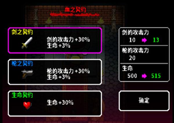 在各迷宫之中,存在着让玩家通过献出自己的鲜血,然后在玩家进入死亡状态为止可以获得力量提升的血之契