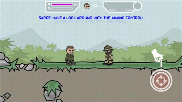 2、点击左边的瞄准按钮,玩家可以控制角色的枪支射击方向,长按即可射击;