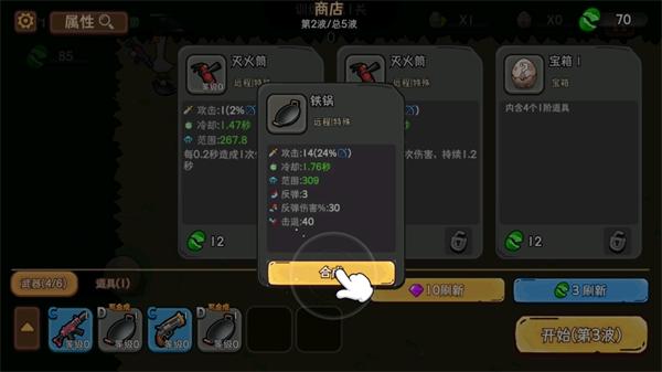 2、拾取足够的材料可以在商店中购买武器和宝箱