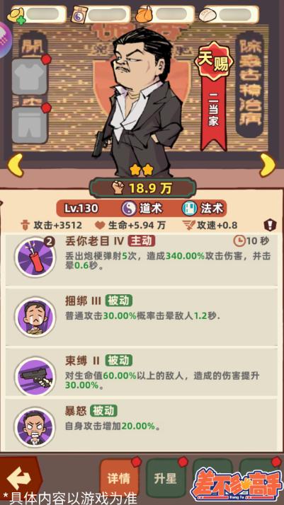 大侠可以根据需要,将二当家作为主要输出角色进行培养,在竞技场等需要瞬间爆发伤害的地方可以使用。
