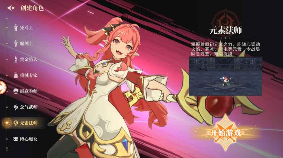 2.接着我们需要创建自己的角色,这里提供了狂斗士、魔剑士、赏金猎人、重械专家、形意拳师、念气武师、元素法师、缚心魔女等多种角色可以选择