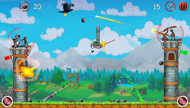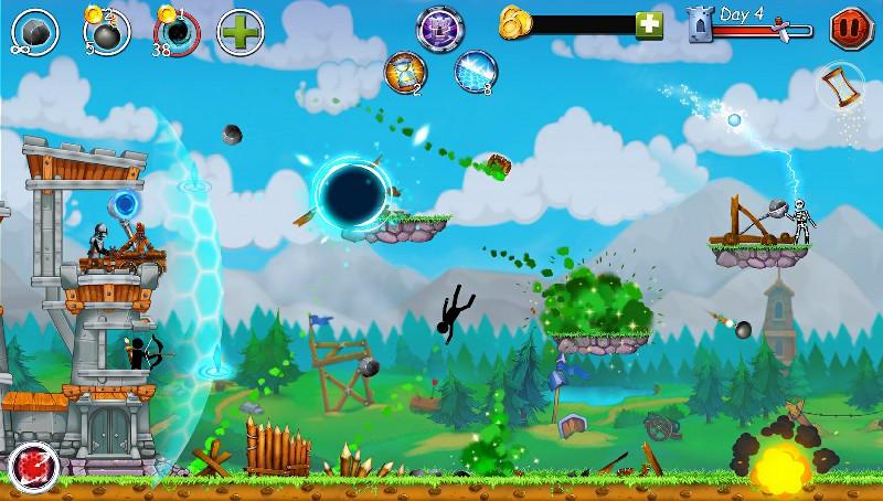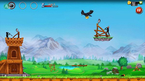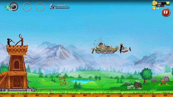 火柴人之守卫城堡2是一款火柴人题材的塔防射击手游。在这款游戏中,你将扮演一名弹射器大师,操控各种投掷武器,如弹射器、弩炮甚至坦克和飞机,保卫自己的城堡。游戏的核心玩法是精准射击和策略防御。你需要调整弹射器的角度和力度,发射炮弹摧毁来犯的敌人,同时升级你的防御塔、弓箭手和各种武器,以抵御越来越强大的攻击。游戏提供多种模式,包括单人战役、无尽波次生存,甚至支持同屏双人对战。简约的火柴人画风搭配刺激的物理弹射效果,带来轻松又充满挑战的防御体验,让你成为一名真正的攻城大师!