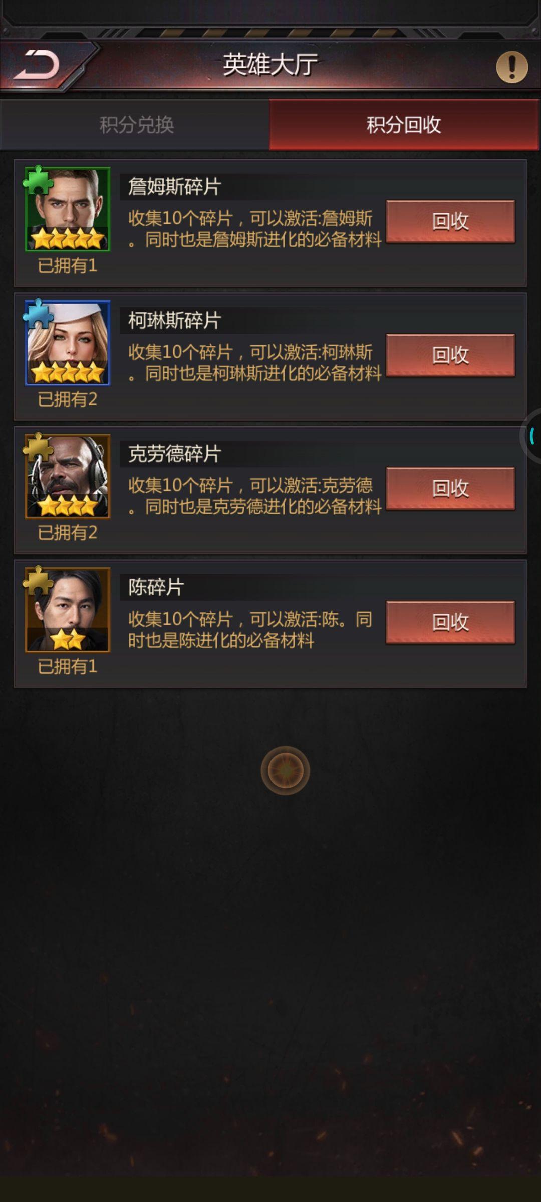 英雄大厅的右下角拼图碎片功能,进去后可以将低⭐卡碎片回收积分,然后可以兑换其他卡碎片