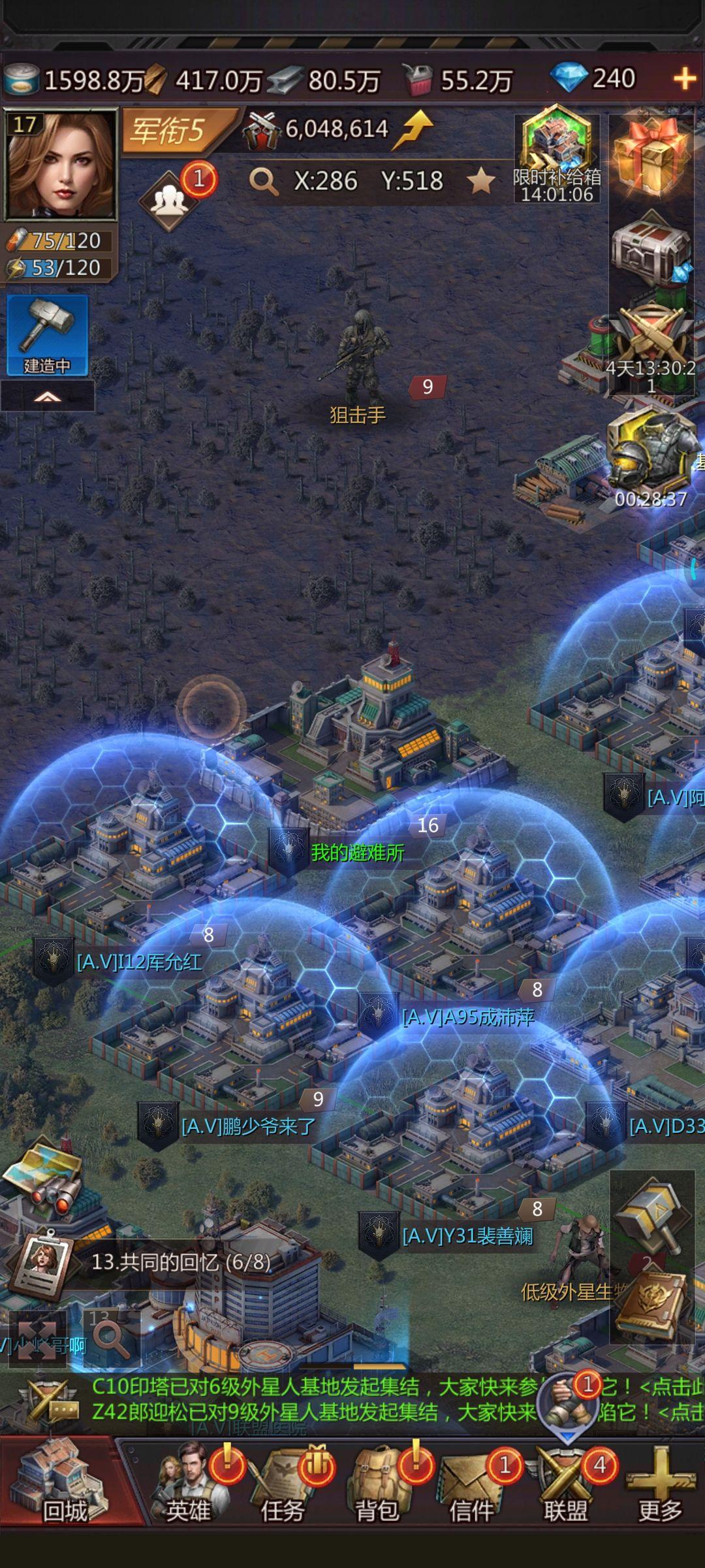第一个“联盟扩张”是升级联盟的地方,捐献优先捐献这个可以加快联盟升级速度