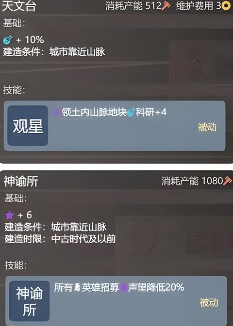 5.而一些建筑和奇观的打造条件都是需要靠近山脉,例如天文台和神谕所。