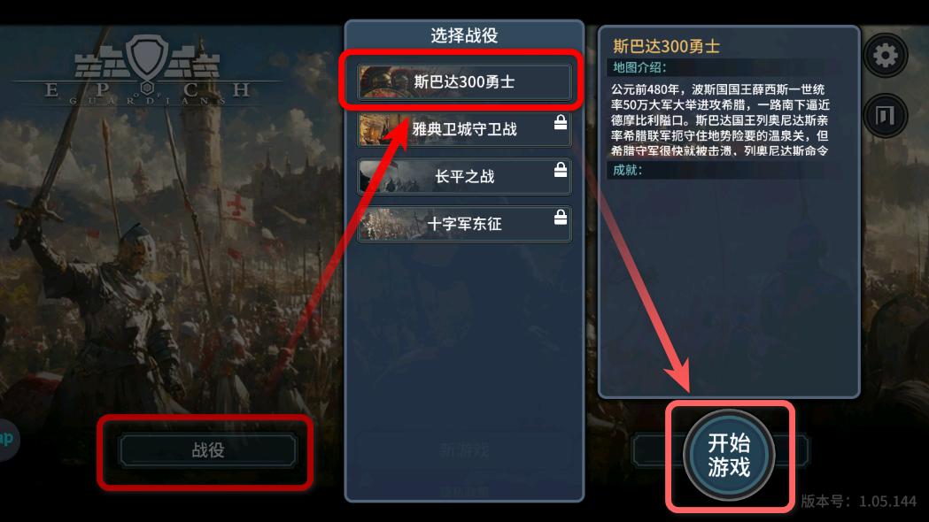 1.点击战役,选择斯巴达300勇士,点击开始游戏。