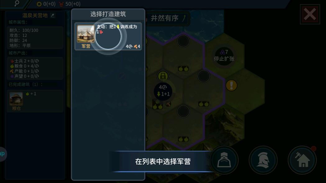 8.在列表中选择军营。