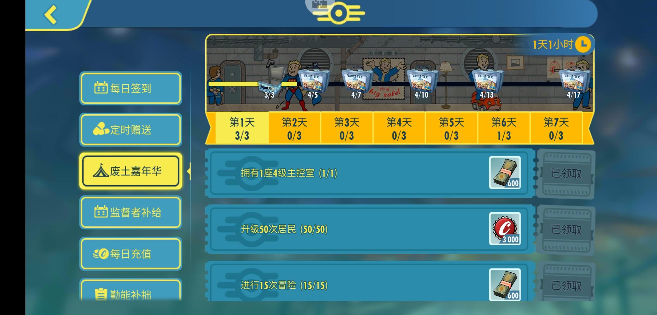 一、创建角色后跟着任务提示玩就会出现游戏初期很贴心的新手福利活动“废土嘉年华”和“监督者补给”尽量把它们全部完成,这对于我们前期有很大的提升。