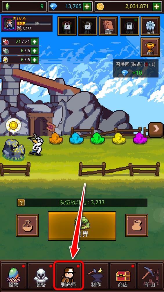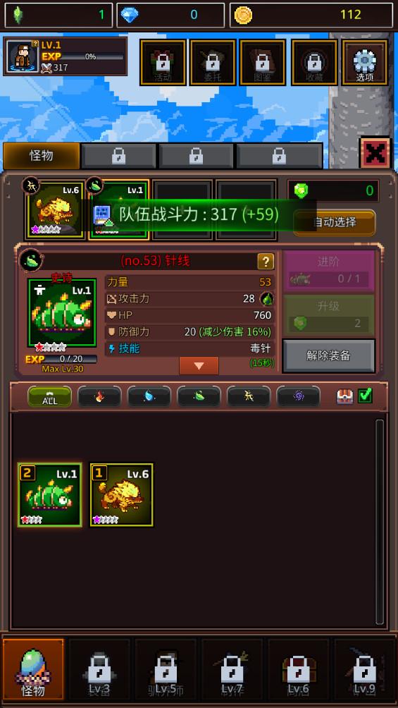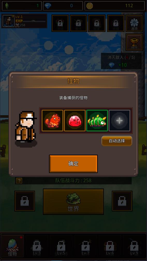 6.捕获到的怪物在怪物界面中可以查看到,你可以在捕获的怪物中挑选喜欢的怪物并加入你的队伍和你一起去战斗其他怪物