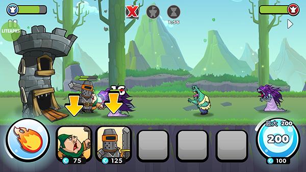 4、当我们发现我们的军队快支撑不住了的时候,可以点击最左边的火球进行攻击,这个火球可以造成范围性伤害;