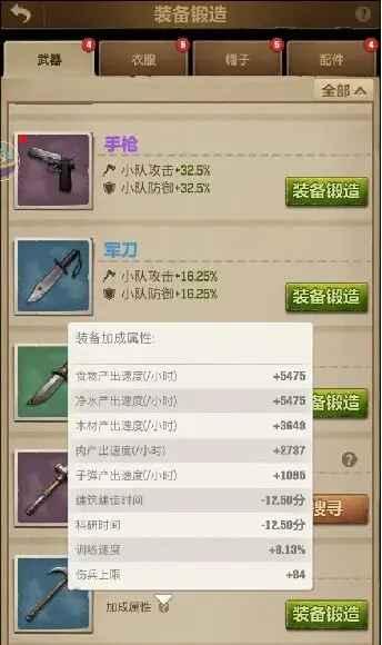 ▲装备锻造界面可看装备加成效果