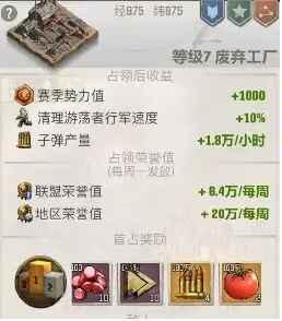 领土中各项建筑,如联盟要塞、前哨(旗帜)、营地以及城寨等,不仅能增加领土资源收益与势力值,有些还能提供增益,占领营地和城寨也会有奖励。