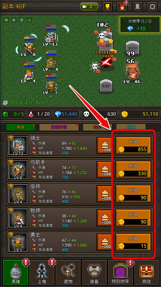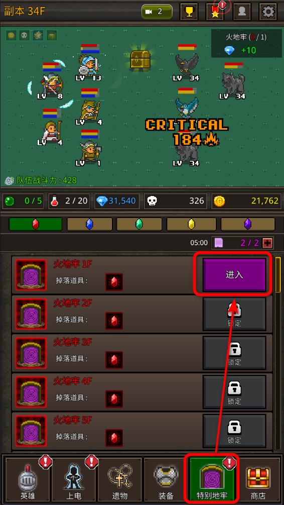 请注意,挑战副本时,英雄仅仅只能进行血量补充。