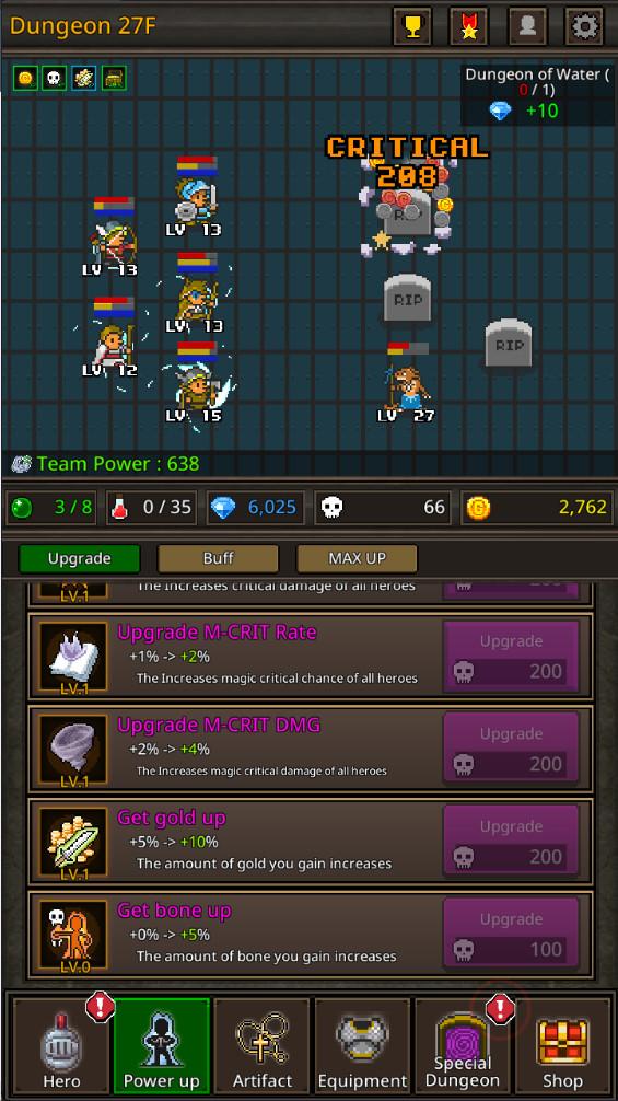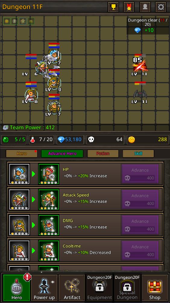 成长英雄是一款像素风的冒险游戏,玩家将组建并培养一支英雄队伍,探索地下城、击败怪物、收集资源,并逐步提升英雄的能力,玩家可以招募不同职业的英雄,提升其等级和技能,怪物和BOSS,收集丰富的战利品,玩家可根据策略需求进行搭配。