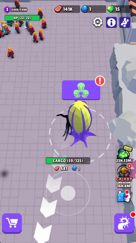 进入游戏后,你是一坨黑乎乎的粘液状外星人,滑动屏幕来进行移动。