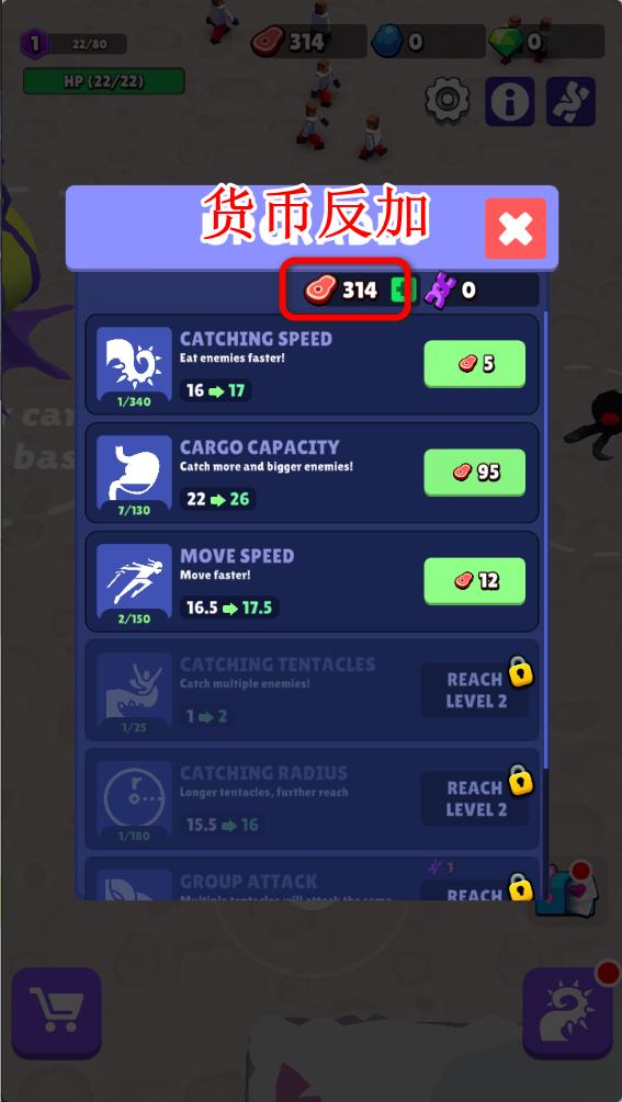 当食物足够后,可以用来升级自己的能力。
