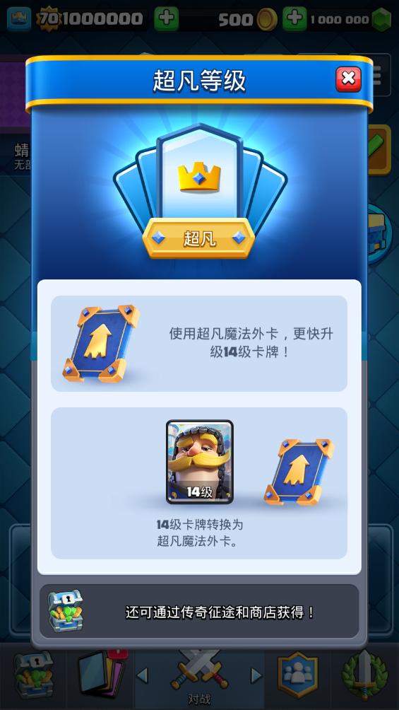 收集并升级数十张卡牌,其中有您熟悉并喜爱的《部落冲突》中的部队、法术和防御建筑,以及多位皇室成员。