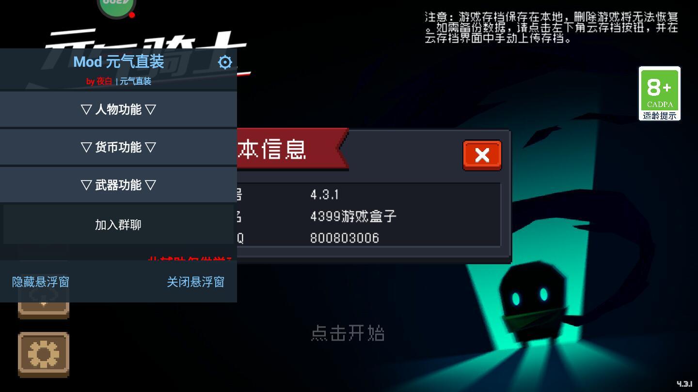 元气骑士4399渠道服破解版给玩家内置了作弊菜单,开启后可以获得解锁角色、无限金币、无限复活和无敌等作弊功能,超级多的破解内容等您来亲自体验,非常多的趣味玩法让您的游戏过程欢乐有趣;