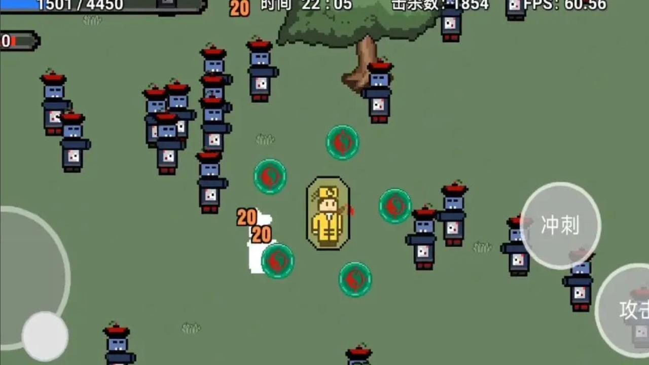 操作来说还是十分简洁,在2D的屏幕上,就是方向控制移动,并且武器装备是一段时间自动攻击的,有自动瞄准的也有随着方向攻击的武器等等。可以说操作上是真的没有什么技术含量,轻松简单,上手便捷。不过上手便捷的代价则是在屏幕上我们还是需要躲避怪物的来临,就是尽量不要被怪物碰到就行了。当血量为零,主角死亡,游戏结束,获得的金币会结算。