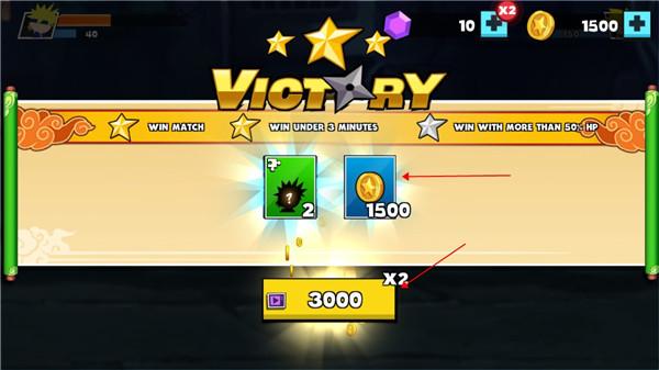 2.然后就是游戏核心内容,每次对战后都可以获得金币奖励,还可以选择双倍领取。