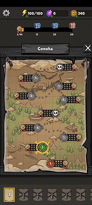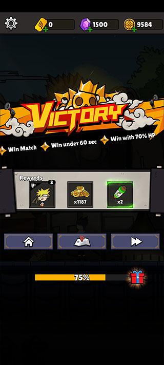 6.利用火柴人忍者的敏捷动作开始战斗吧,获得胜利会有相应的关卡奖励,房子按钮回到首页,地图按钮选择关卡,最右侧的按钮点击可以直接进入下一关。
