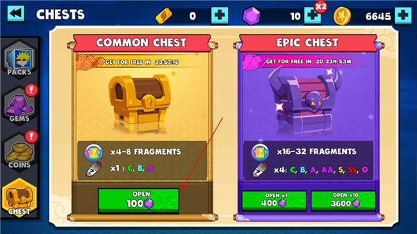 3.选择右下角的宝箱抽奖,使用宝石开启宝箱,能够开出各种奖励。