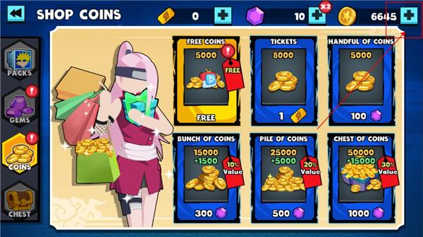 4.点击右上角的加号,可以进入金币商城,使用兑换券或者宝石都可以购买。