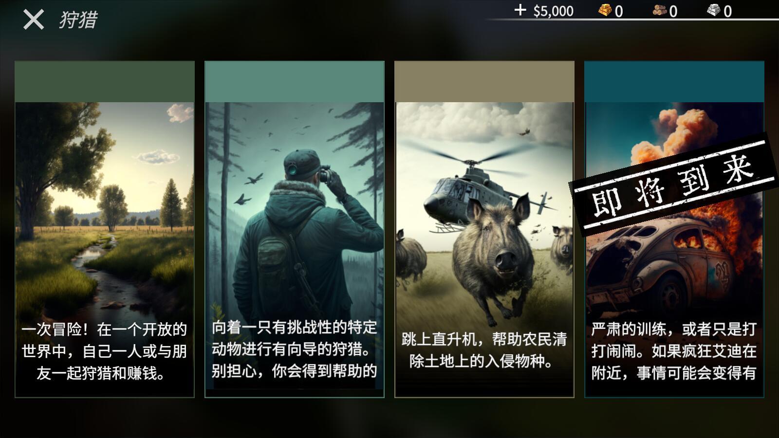 美国射手游戏为大家进行了汉化,这是一款模拟狩猎类型的游戏,玩家可以和好友一起探索野外,建立营地进行狩猎,游戏有着很逼真的场景,各种枪械的手感也非常好,能够让您体验到非常真实的狩猎过程,而且有多种不同的地形和场景和选择。