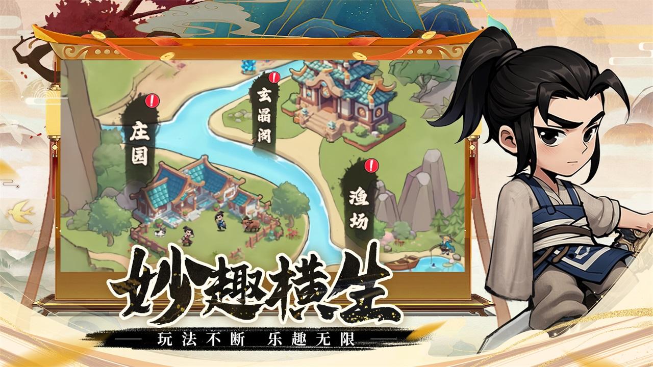 剑侠向前冲的玩法模式偏向于休闲策略,玩家们在游戏中将会从一个江湖小虾米开始成长,在这个江湖中不断地冒险,结识各路的英雄豪杰们,学习各种绝世神功,并且创立属于自己的门派,培养门派弟子在江湖中成就一段佳话,青史留名。