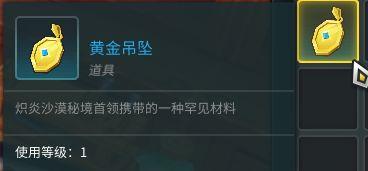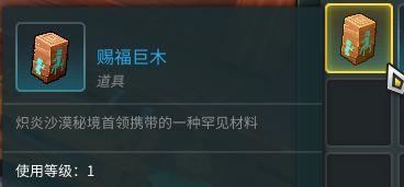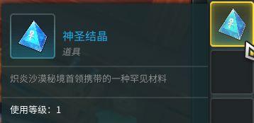 炽炎沙漠秘境首领携带的一种罕见材料,可以用于高级沙漠家具的合成。