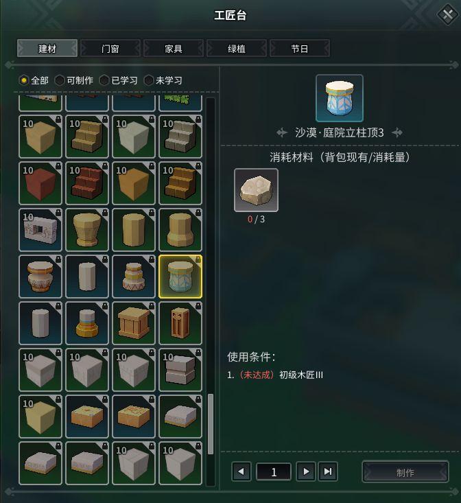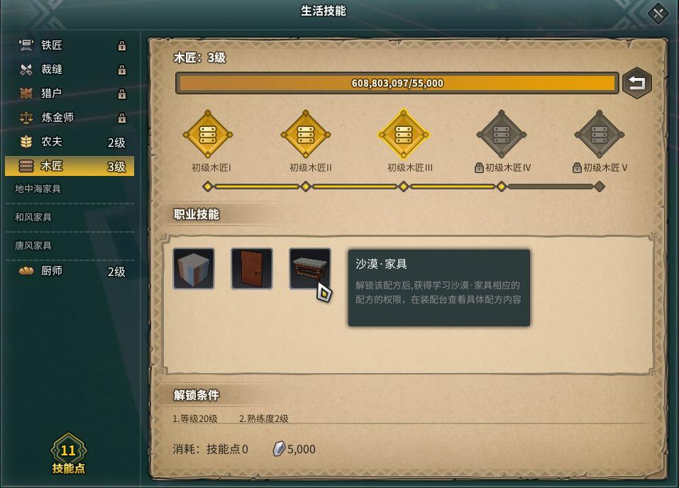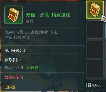 木匠开放第三级,学习后可解锁沙漠系列家具