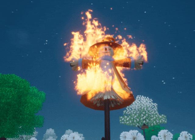 活动期间,稻草人将出没在微风村庄旁,在背包合成万圣火把,手持万圣火把可以点燃它们!