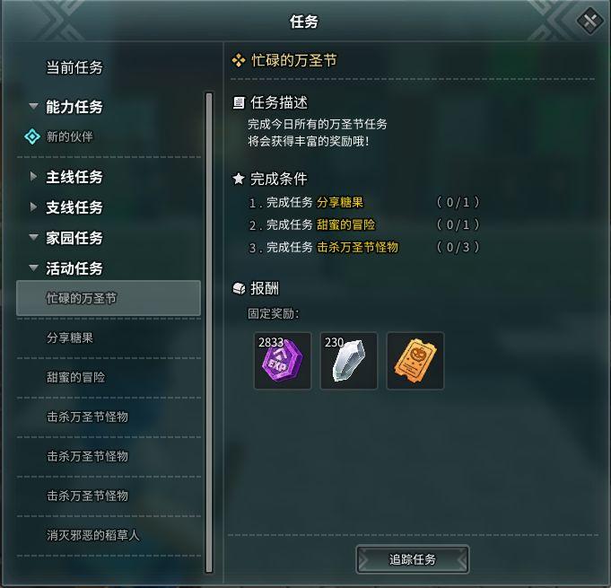 接受万圣节活动的挑战,万圣活动期间,角色将自动获得每日活动任务,每日凌晨重置。