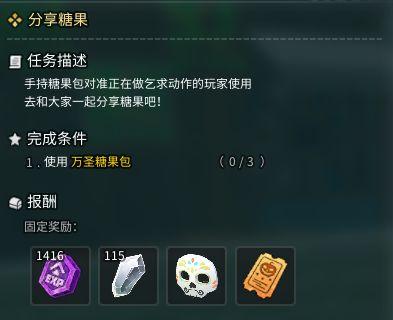 惊魂之夜,你是想要做分享的那个人,还是备受款待的那个人呢?通过制作台可合成万圣糖果包。