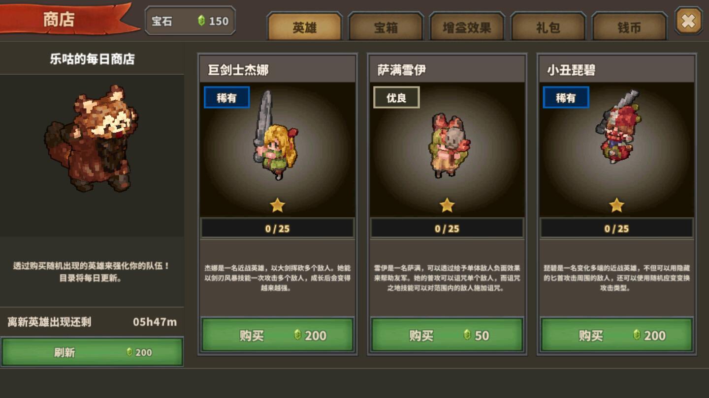 多样英雄:25种拥有不同属性、专长与弱点的各式英雄,收集并打造你的最强队伍;