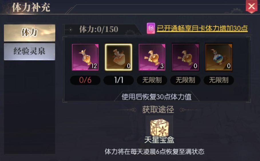星渊体力药:使用后回复30点体力值,没有使用次数限制