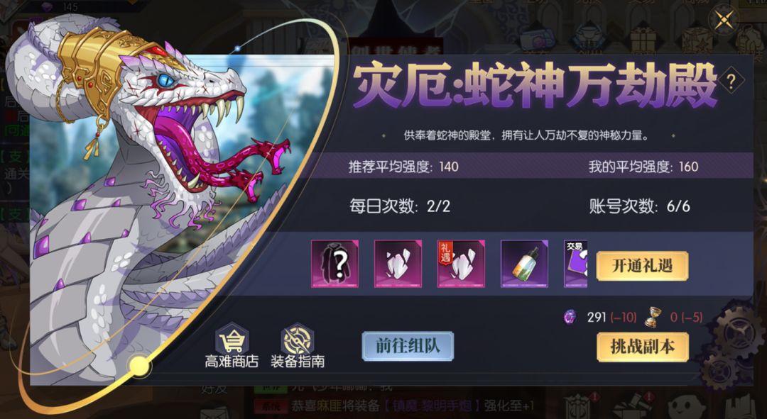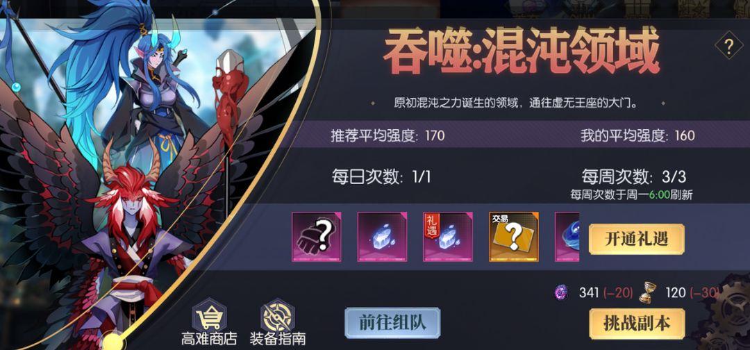 注意:副本难度偏高,建议组队进行挑战,失败也扣每日次数,高难装备爆率比星渊高但每日限2次