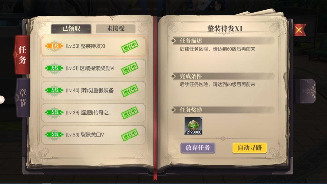 完成任务获取大量经验,前两天尽快升级,跟着主线任务就可以啦~