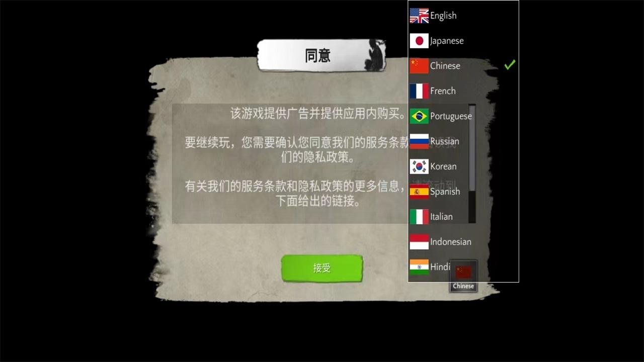 2.在语言切换界面点击chinese切换即可让游戏换成中文