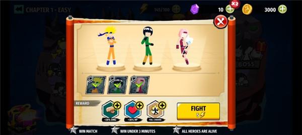 4.可以选择各种火影忍者英雄,每个英雄都有不同的技能。