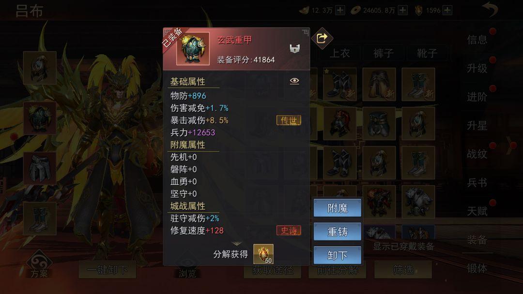 Ø 头盔、上衣、裤子、靴子掉落时会生成不同品质和不同词条的基础属性和城战属性,玩家可重铸装备属性