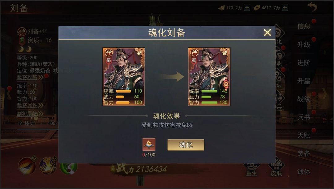 2、武将魂化可大幅度提升武将基础属性并激活魂化效果