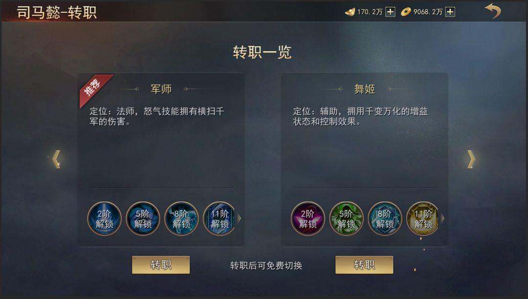 2、根据兵种的不同拥有不同的转职方向