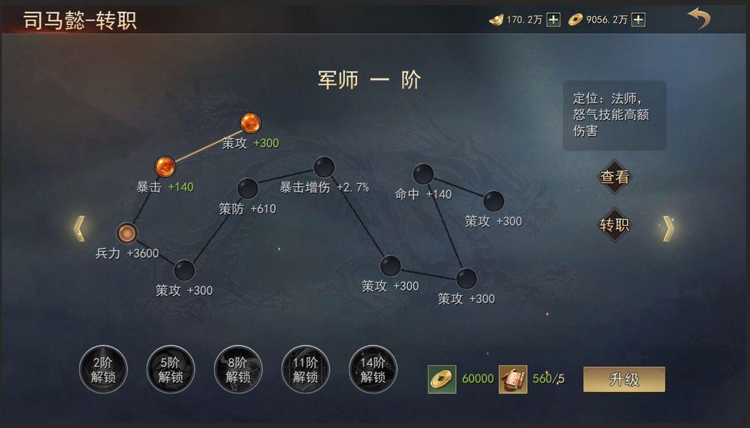 1、武将转职是武将主要的成长线之一