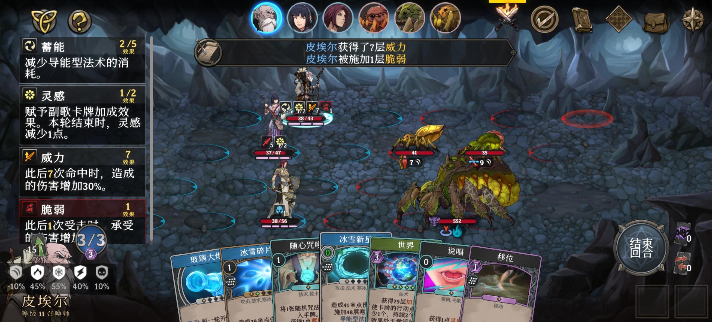 1.全体队友每打出十张牌,会受到全体攻击,伤害大概30点左右(上护盾或者硬抗后加血)。